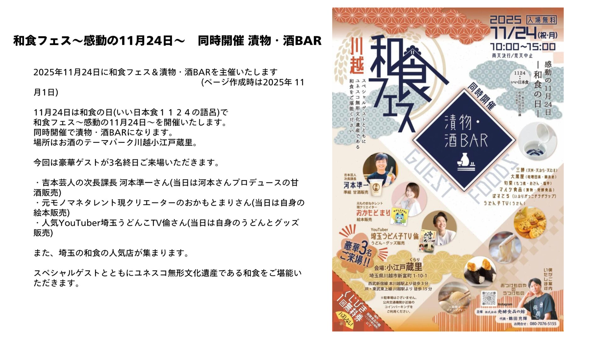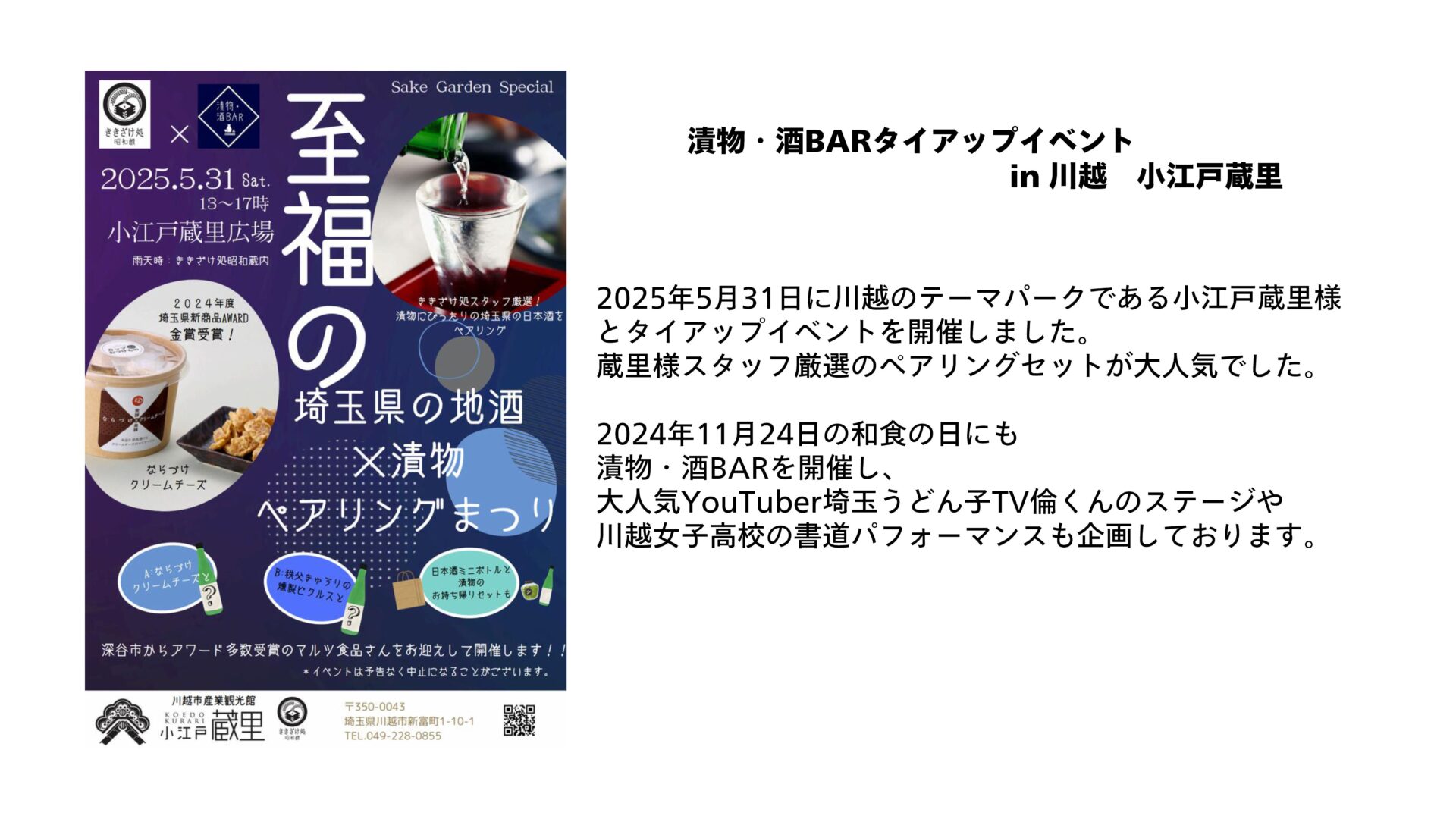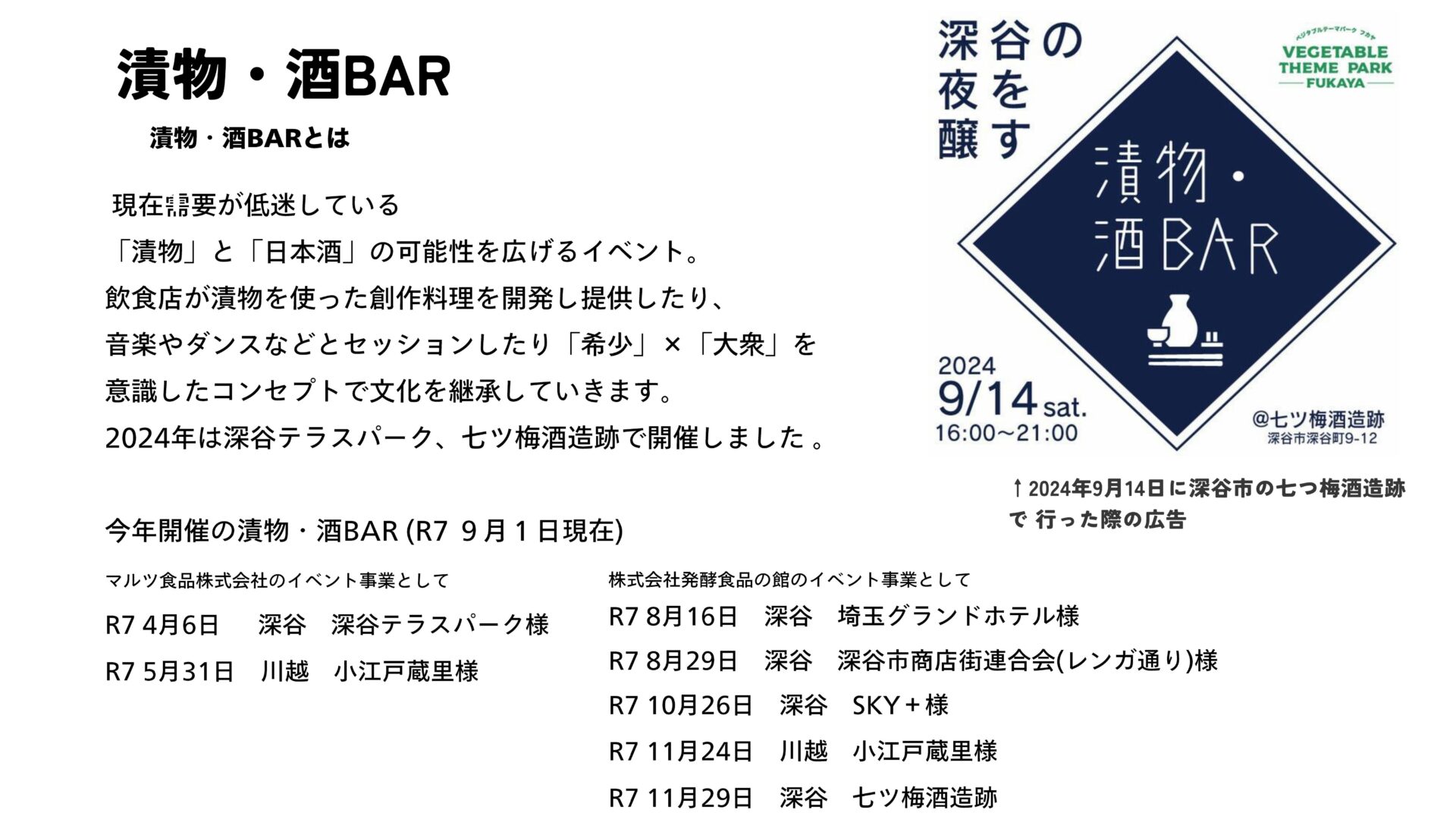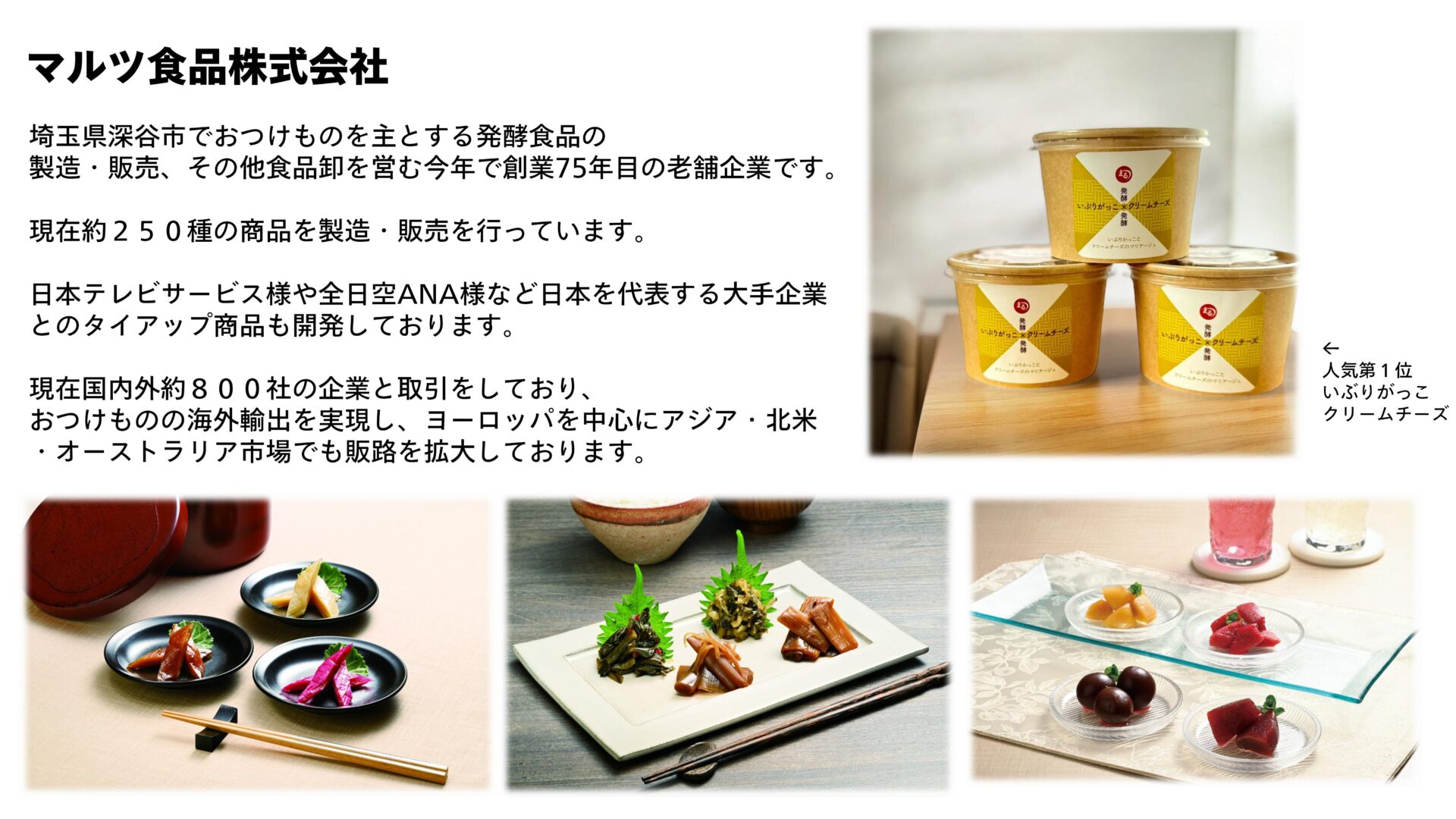 埼玉県深谷市でおつけものを主とする発酵食品の製造・販売、その他食品卸を営む今年で創業75年目の老舗企業です。